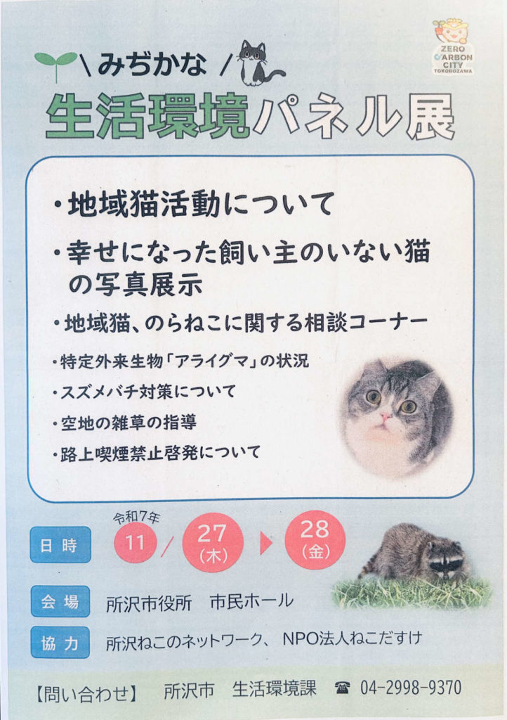 協力:所沢ねこのネットワーク、NPOねこだすけ